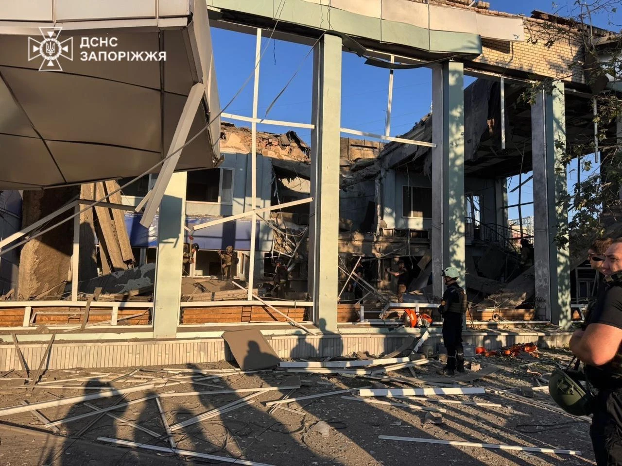 Кадры автовокзала в Запорожье после прилета КАБа публикуют украинские медиа.