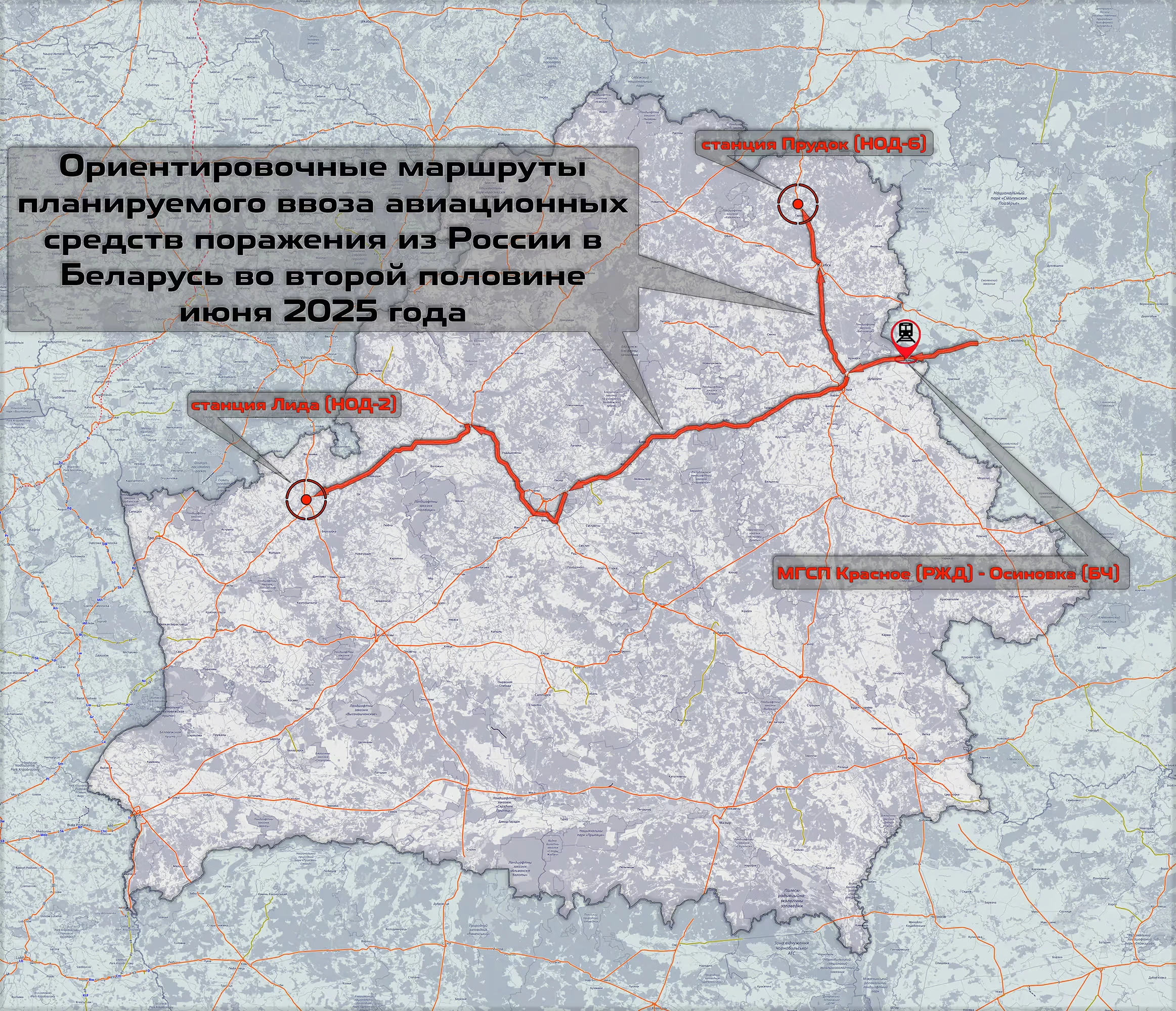 С 14 по 30 июня 2025 года из России на территорию Беларуси железнодорожным транспортом будет осуществлен ввоз груза, относящегося к 1 классу опасности — «взрывчатые материалы», представляющего собой авиационное вооружение — авиабомбы и ракеты различных типов.