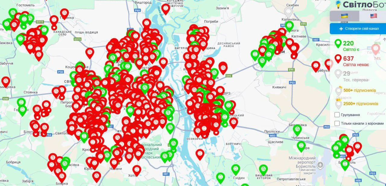 Ситуация со светом в Киеве на сейчас в одной картинке.