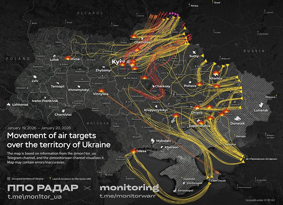 Владимир Зеленский озвучил регионы страны, по которым в ночь на 20 января в условиях сильных морозов ударили оккупационные войска: Киев и Киевщина, Винницкая область, Днепровщина, Одесская область, Запорожье, Полтавщина, Сумщина и ряд других областей.