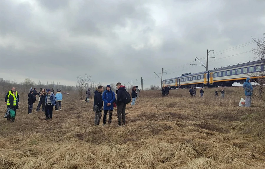 Поезд сообщения Киев – Славутич остановили посреди движения в Черниговской области из-за опасности ударов и вывели оттуда пассажиров, сообщает Украинская правда.
