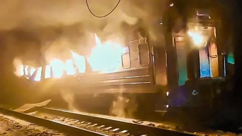 Российские военные пытались наносить удары по поезду даже тогда, когда он уже горел.